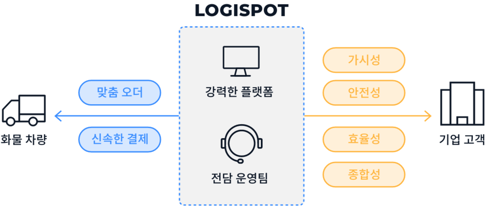 로지스팟은 물건이 이동되며 발생하는 현실 세계의 어려운 문제를해결하고 있습니다.물류의 디지털화는 IT 시스템만을 의미하지 않습니다.로지스팟이 이끄는 변화는 기술, 네트워크, 경험을 바탕으로 한전문성을 내포합니다.어디서나 안전하게 접근할 수 있는 클라우드 기반의 소프트웨어,광범위한 데이터와 차량 네트워크, 숙련된 운영팀의 전문적인대응을 통해 물류의 디지털 혁신을 이끌어갑니다.